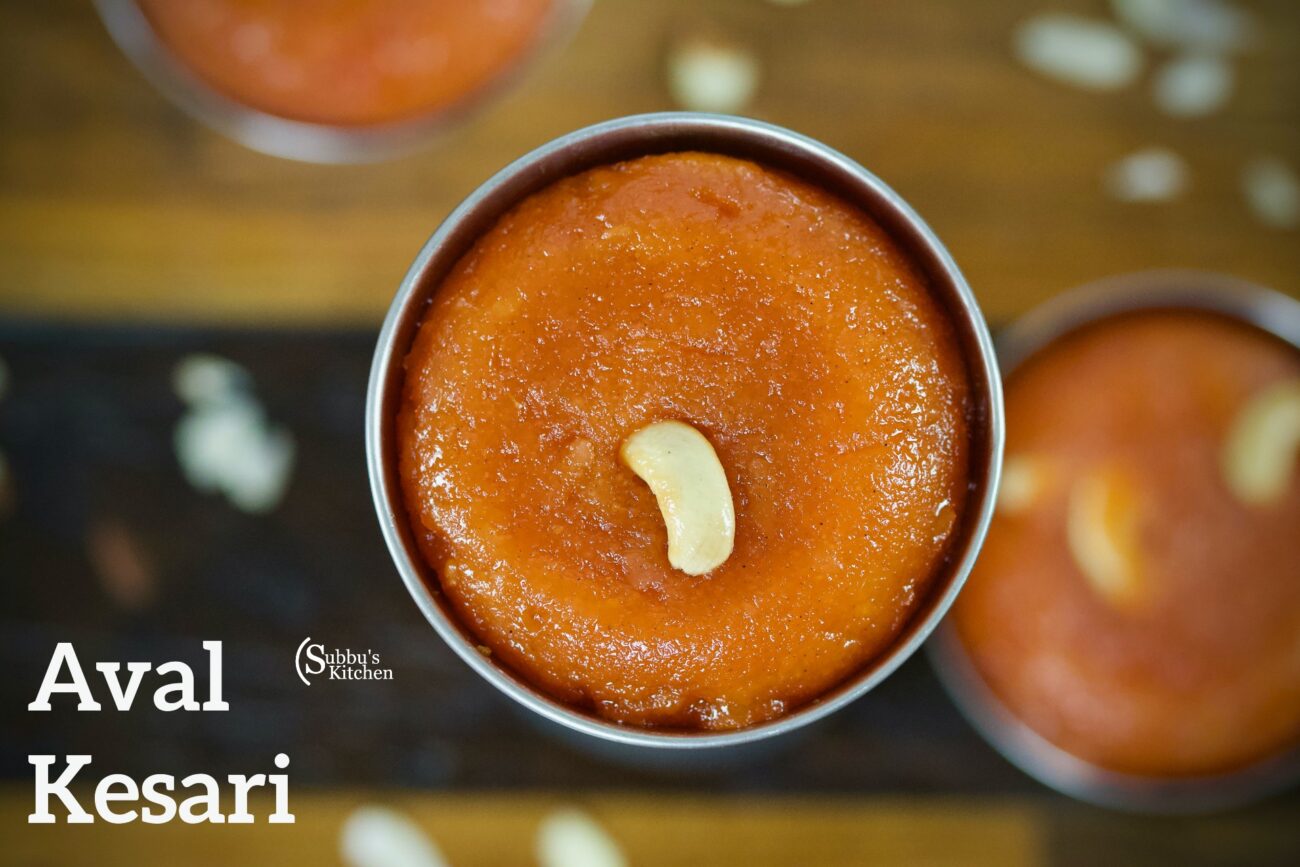 Aval Kesari Recipe Poha Kesari Recipe Flattened Rice Kesari Subbus Kitchen