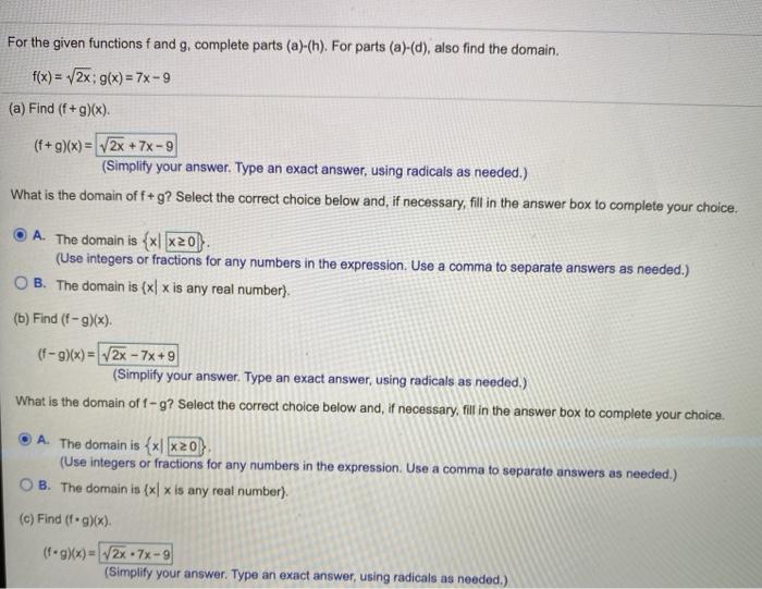 Solved For The Given Functions F And G Complete Parts Chegg Com